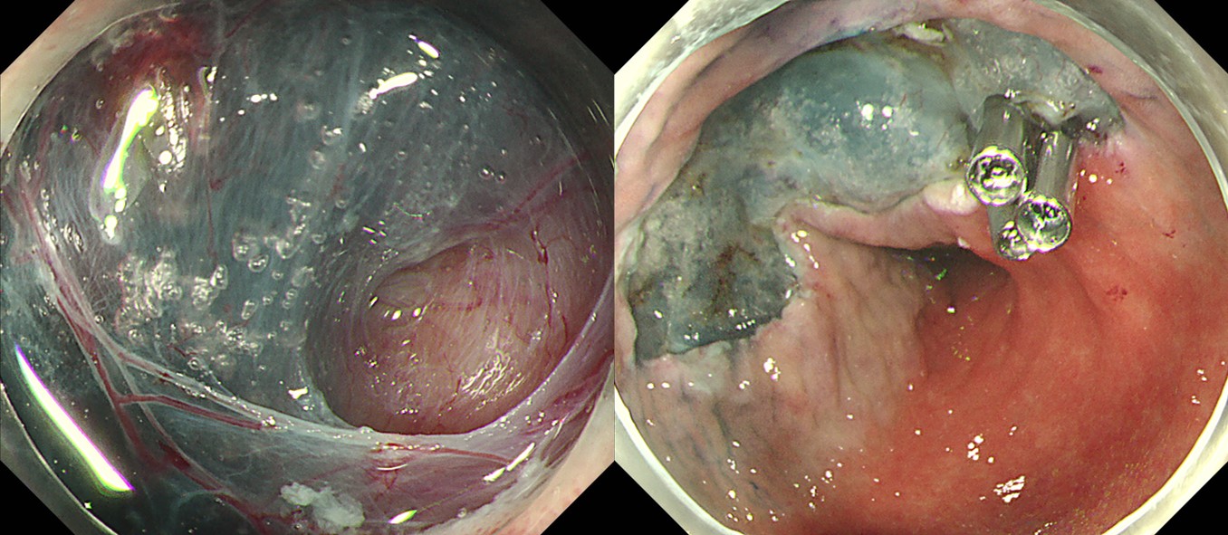 õ°øÀÎÁö ¾Æ´ÑÁö ¸íÈ®ÇÏÁö ¾Ê¾Ò½À´Ï´Ù. ÀÏ´Ü ESD¸¦ ´Ù ¸¶Ãưí clippingÀ» ÇÏ¿´½À´Ï´Ù. °¡½¿ »çÁøÀ» º¸´Ï õ°øÀÌ ¾Æ´Ï¾ú½À´Ï´Ù. Submucosal layer¿¡ ±¹ÇÑµÈ deep cuttingÀÎ °ÍÀ¸·Î ÇØ¼®ÇÕ´Ï´Ù.