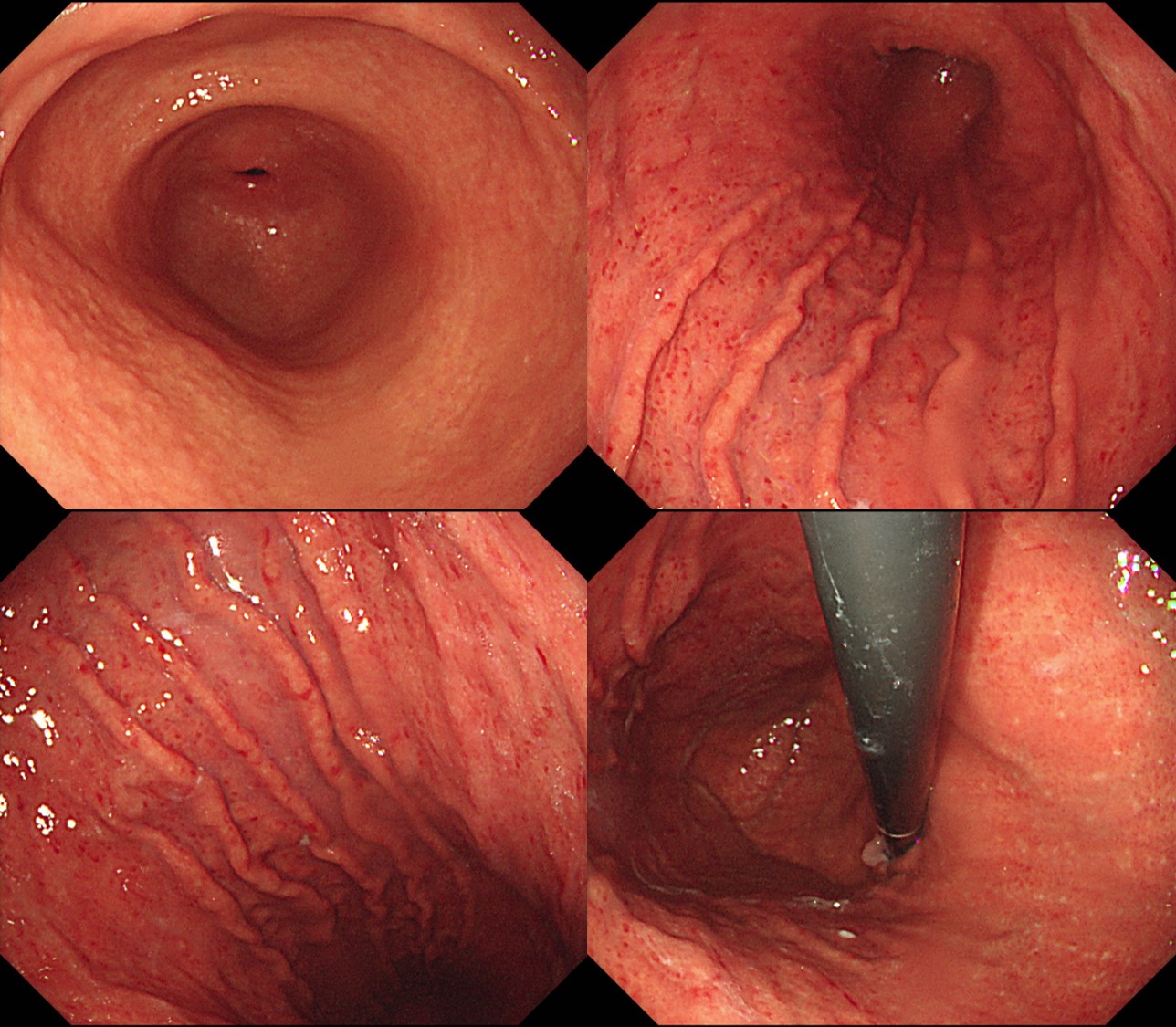 78¼¼ ¿©¼ºÀÇ ÀüÇüÀûÀÎ Ç︮ÄÚ¹ÚÅÍ À§¿°ÀÔ´Ï´Ù. ¾à°£ÀÇ hiatal hernia¿Í columnar-lined esophagus ¼Ò°ßÀÌ ÀÖ¾ú½À´Ï´Ù. »ê¿ª·ù Áõ»óÀº ¾ø¾ú½À´Ï´Ù.