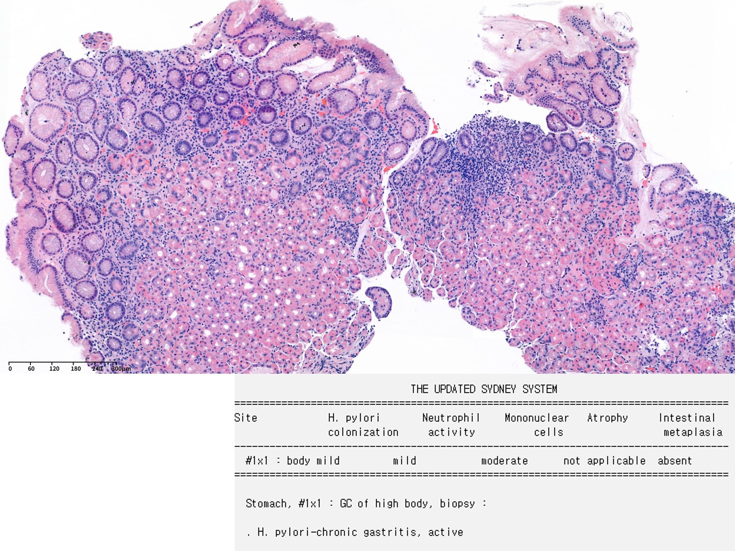 2017³â±îÁö´Â Ç︮ÄÚ¹ÚÅÍ À§¿°ÀÇ Á¦±ÕÄ¡·á ÀÚü°¡ ºÒ¹ýÀ̾úÀ¸¹Ç·Î 'chronic superficial gastritis of the proximal stomach (r/o Helicobacter-associated)'¶ó°í ¾ÖµÑ·¯ Ç¥ÇöÇÏ¿´Áö¸¸ (Âü°í) , ÀÌÁ¦´Â Á÷Á¢ÀûÀ¸·Î 'Ç︮ÄÚ¹ÚÅÍ À§¿°'À¸·Î Ç¥ÇöÇØµµ ÁÁÀ» °Í °°½À´Ï´Ù. ÀϺ»¿¡¼ »ç¿ëÇÏ´Â ¿ë¾îÀÎ 'ÃâÇ÷¼º À§¿°'À̶ó´Â ³»½Ã°æ Áø´Ü¸íÀº ¾²Áö ¸» °ÍÀ» ±ÇÇÕ´Ï´Ù.