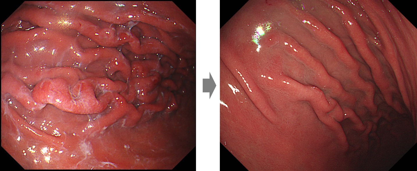 Thickened fold·Î º¸¸¸ 4Çü ÁøÇ༺ À§¾Ï ÀǽÉÀ¸·Î ÀǷڵǾúÀ¸³ª Ç︮ÄÚ¹ÚÅÍ Á¦±ÕÄ¡·á ÈÄ ÇöÀúÈ÷ È£Àü