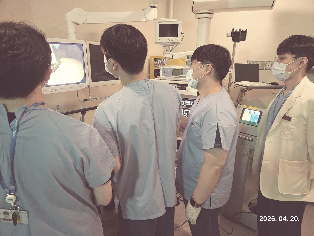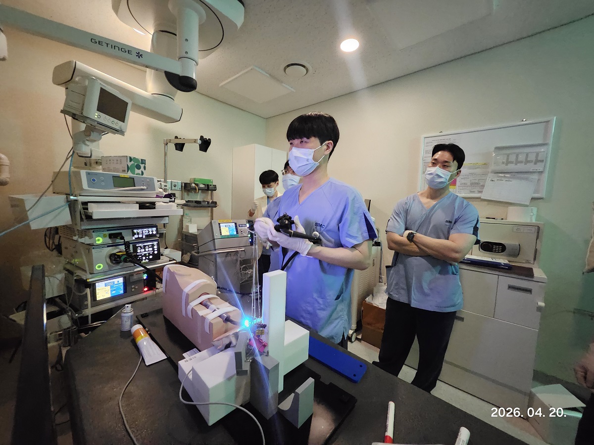 [2025-7-2] »ï¼º¼¿ïº´¿ø º»°ü ³»½Ã°æ½Ç¿¡¼ fellow 1³âÂ÷ ¼±»ý´ÔµéÀ» ¸ð½Ã°í Á¦1ȸ Mikoto colonoscopy simulator ÈÆ·ÃÀ» ÁøÇàÇÏ¿´½À´Ï´Ù. Tutor·Î Âü¿©ÇϽбèÀº¶õ ±³¼ö´Ô²² °¨»çµå¸³´Ï´Ù.