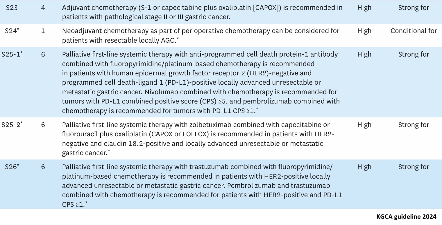 KGCA guideline 2024 neoadjuvant, adjuvant, first-line palliative systemic therapy statements