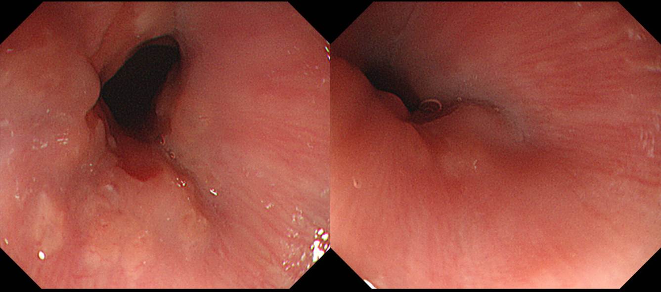 ±Þ¼º ¿°Áõ¿¡ ÀÇÇØ edema°¡ ½ÉÇϰųª, ¸¸¼º ¿°Áõ¿¡ ÀÇÇÏ¿© squamous epithelial hyperplasia°¡ ½ÉÇÑ °æ¿ì°¡ ¾Æ´Ï¶ó¸é ´ëºÎºÐ palisading zoneÀ» ³»½Ã°æÀ¸·Î È®ÀÎÇÒ ¼ö ÀÖ´Ù°í »ý°¢ÇÕ´Ï´Ù. 360µµ ¿øÁÖ ¸ðµÎ¿¡¼ ±ú²ýÇÏ°Ô °üÂûÇϱâ´Â ¾î·Æ´õ¶óµµ ȸéÀÇ ¿ìÃøÀº ºñ±³Àû Àß º¸ÀÔ´Ï´Ù.