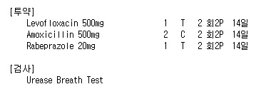 Àú´Â "PPI + levofloxacin 250mg + amoxicillin 1,000mg, ÇÏ·ç 2¹ø 1ÁÖ"¸¦ ó¹æÇϰí ÀÖ½À´Ï´Ù.