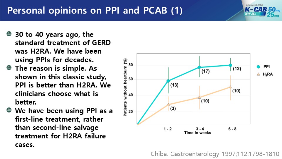 5. ÇÑ ±¹, ÀϺ», ¸ß½ÃÄÚ µî, P-CABÀÌ Ãâ½Ã µÈÁö 1³âµµ ¾ÈµÇ¾î¼ GERD Ä¡·á °¡À̵å¶óÀο¡ ÃÊÄ¡·á·Î ±Ç°íµÇ´Â »ç·Ê°¡ ¸¹¾ÆÁö°í ÀÖ½À´Ï´Ù. ÀÌ¿¡ ´ëÇÏ¿© ¾î¶² Àǹ̷Π¹Þ¾Æµé¿©¾ß ÇÒÁö ±³¼ö´ÔÀÇ ÀǰßÀ» ¿©Âã´Ï´Ù.
