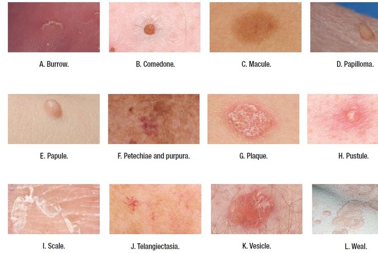 (13) Burrow: This appears as a slightly elevated, grayish, tortuous line in the skin, and is caused by burrowing organisms.