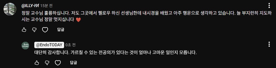 ¸¶Áö¸· ³×¹øÂ°´Â ÀÌÁØÇà ±³¼ö´ÔÀÇ °³ÀÎÀûÀΠƼĪÀ̾ú½À´Ï´Ù. Á¦°¡ ³»½Ã°æÀ» Á¶ÀÛÇÏ´Â ¸ð½ÀÀ» ÁöÄѺ¸½Ã´õ´Ï ÀÌÈÄ µû·Î scope Á¶ÀÛ°ú ±âº»ÀûÀÎ ¼ú±â¿¡ ´ëÇÑ Çǵå¹éÀ» Áּ̽À´Ï´Ù. ESD »Ó ¾Æ´Ï¶ó Áø´Ü³»½Ã°æ½Ã¿¡µµ ´Ù½ÃÇѹø ±âº»±â°¡ Áß¿äÇÏ´Ù°í Çϼ̴µ¥ °³ÀÎÀûÀ¸·Î ¸¹Àº µµ¿òÀÌ µÇ¾ú½À´Ï´Ù.