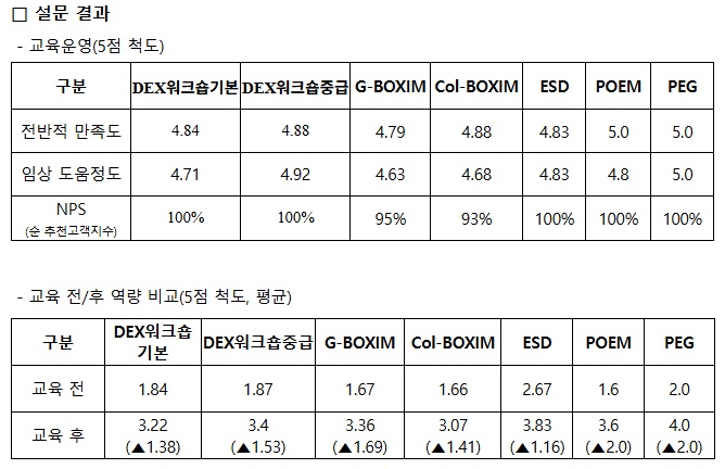 Âü¼®ÀÚ Àü¿øÀÌ ¸ðµç Ç׸ñ¿¡ '¸Å¿ì ¸¸Á·'À» ´äÇØÁּ̰í NPS (¿ì¸®¸¦ ÇǰïÇÏ°Ô ¸¸µå´Â ÁöÇ¥À̹ǷΠÀú´Â ½È¾îÇÕ´Ï´Ù. ±×·¯³ª °ü¸®ÀÚµéÀº ÁÁ¾ÆÇÕ´Ï´Ù. °í°´¼øÃßõÁö¼ö)µµ ¸ðµÎ 'Ãßõ'À» ´äÇØÁּ̽À´Ï´Ù. º¸¶÷À» ´À³§´Ï´Ù. Á» ´õ ÀÏÂï ½ÃÀÛÇϸé ÁÁ¾Ò°Ú´Ù ½Í¾ú½À´Ï´Ù. ¸¹Àº ÅõÀÚ¸¦ ÇØ Áֽб³À°ÀÎÀç°³¹ß½Ç¿¡ °¨»çµå¸³´Ï´Ù. ¾Æ·¡´Â ±³À° Àå¸éÀÔ´Ï´Ù.