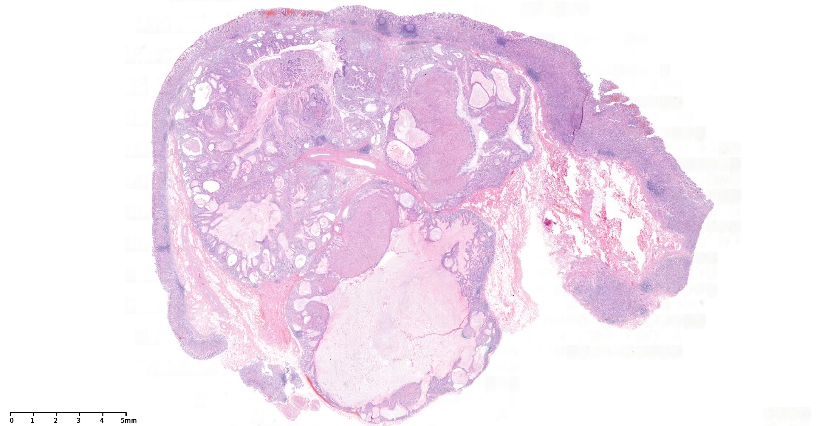 Wedge resection: herniated gastric mucosa in the submucosa with cystic dilatation