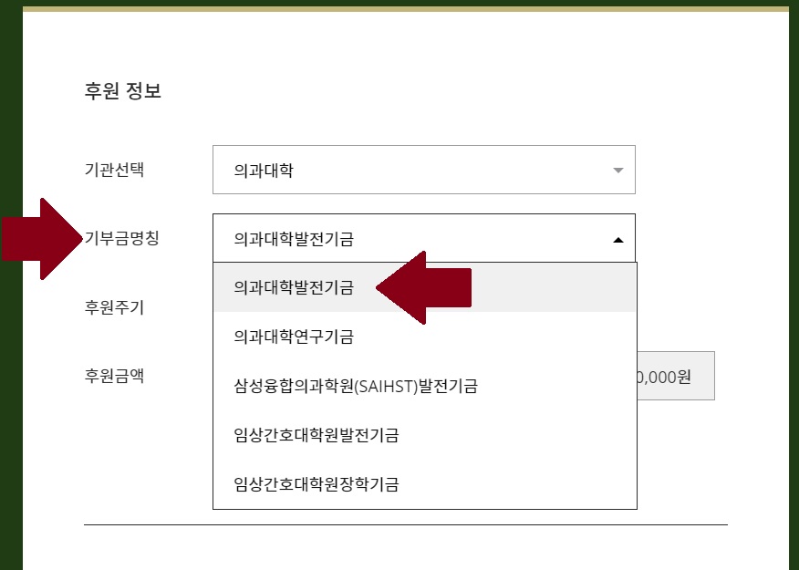 »ó´Ü '±âºÎÇϱâ'¸¦ ´©¸¥ ÈÄ ´ÙÀ½ È¸é ¿ìÃø¿¡¼ ´Ù½Ã '±âºÎÇϱâ'¸¦ ´©¸£¸é ¾Æ·¡¿Í °°Àº ȸéÀÌ ³ª¿É´Ï´Ù. ¿©±â¿¡¼ '±â°ü¼±ÅÃ' → 'Àǰú´ëÇÐ'À» Ŭ¸¯ÇØ ÁֽʽÿÀ.